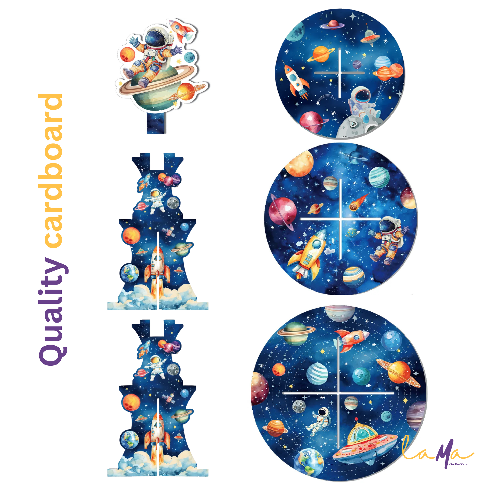 Ideal for space-themed birthdays, galaxy or astronaut parties, to the moon celebrations, kids' outer space events, rocket/NASA-inspired birthdays, baby showers with space vibes, or any cosmic party. The playful astronauts, planets, rocket, and stars make it a fun, out-of-this-world centerpiece for kids and adults!